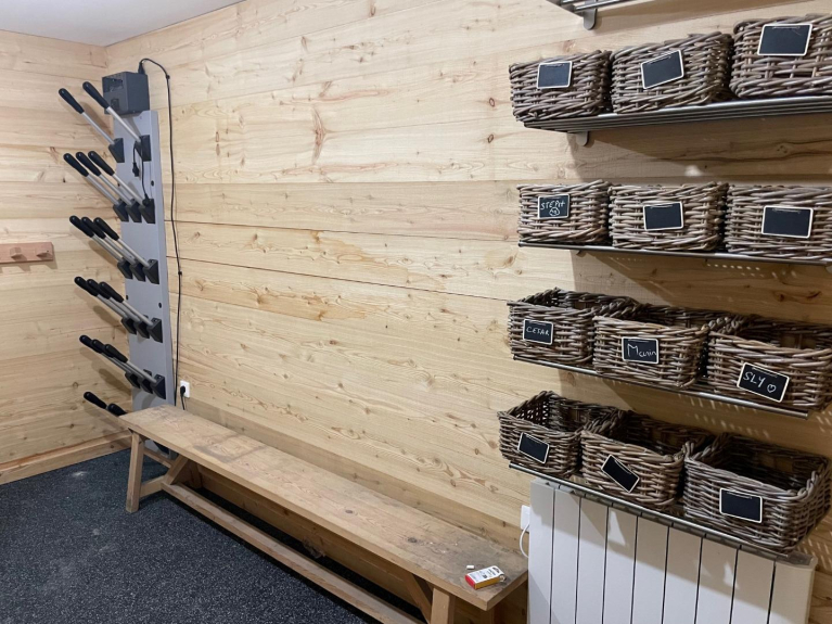 - un ski room avec bancs, casiers et sèche chaussures au niveau départ ski