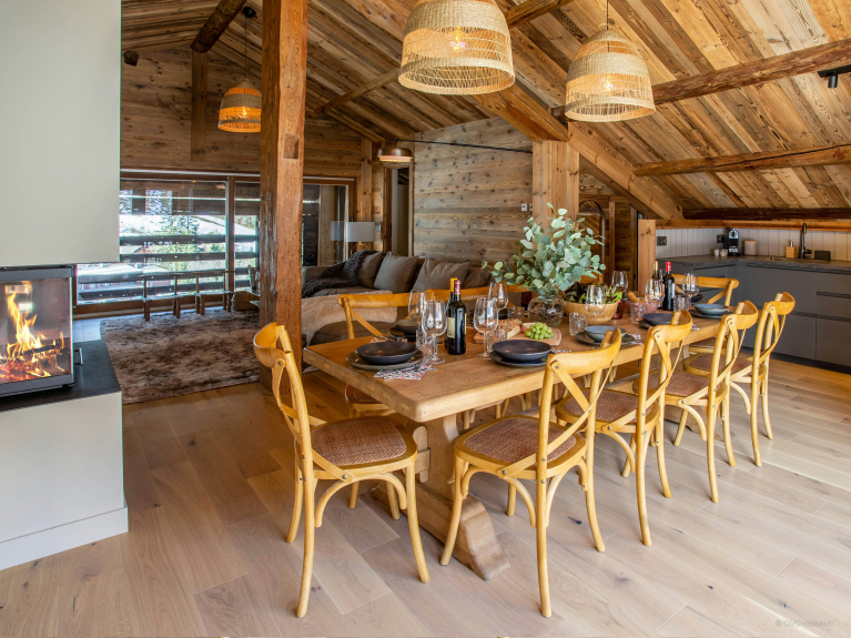 La belle pièce de vie du chalet Backflip vous invite à vous réunir pour discuter sur le canapé tout confort ou à partager un repas autour de l'immense table à manger. Les trois chambres doubles disposent chacune d'une salle de douche élégante, et les jeunes enfants adoreront la chambre avec lits superposés, qui peut accueillir quatre personnes, et qui dispose d'une salle de douche séparée.