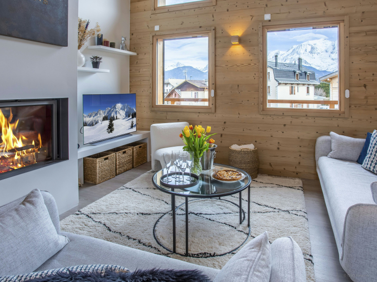 Dans le jardin à l'extérieur, un jacuzzi vous permettra de vous détendre tout en profitant de la vue magnifique sur le Mont Blanc.