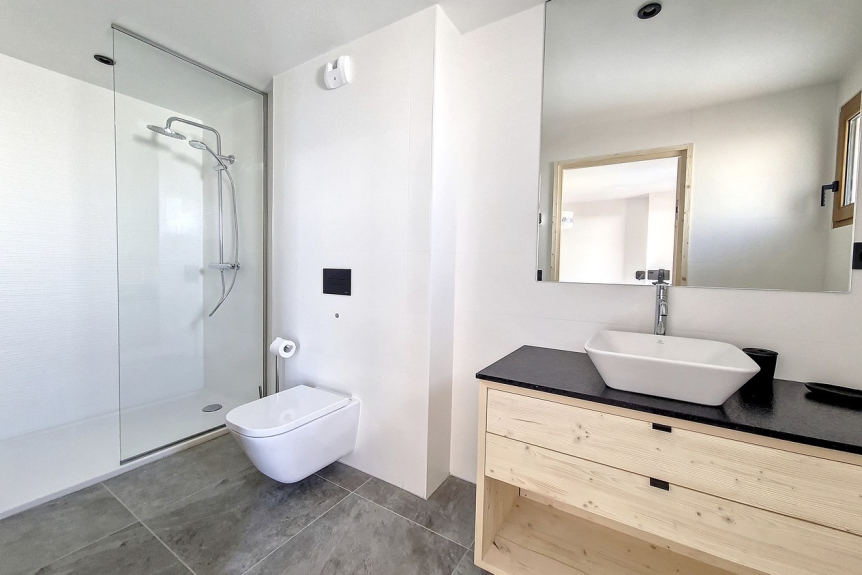 Chambre 1 en suite : 1 lit double en 160, TV, douche à l'italienne, lavabo, WC.