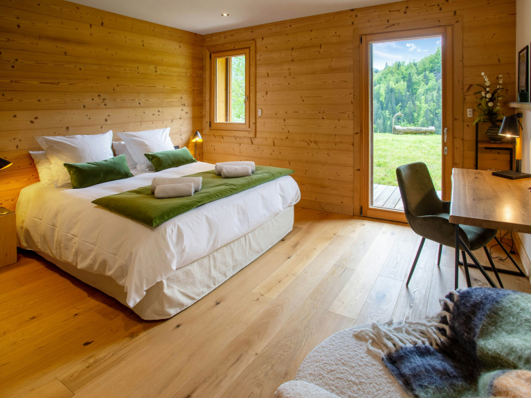 Chalet Ourson du Passieu est une ferme récemment rénovée pour 10 personnes, comptant cinq chambres et cinq salles de bain, et répartie sur trois niveaux.