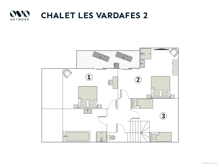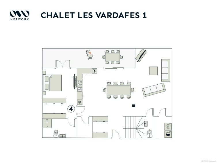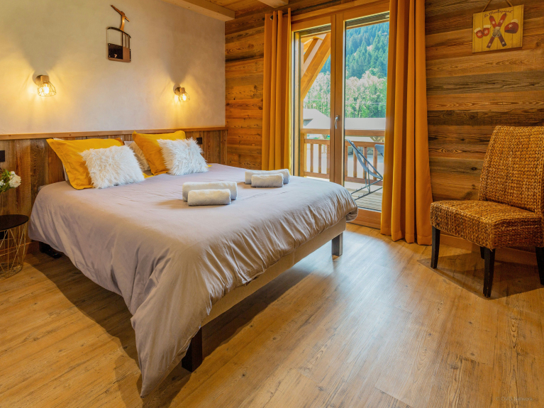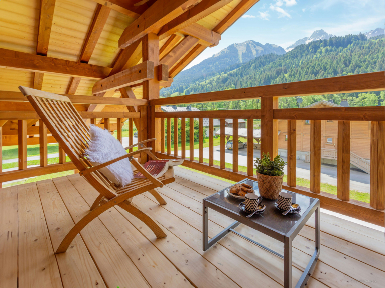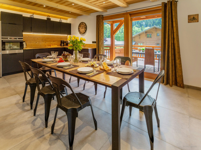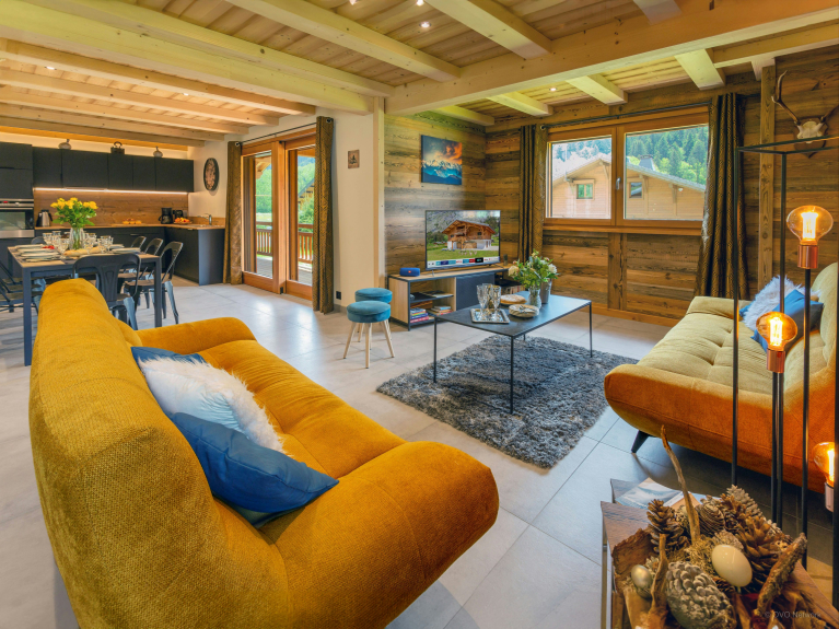 Nous aimons particulièrement le grand salon, qui ouvre sur un balcon offrant une vue superbe sur les montagnes. Trois des quatre chambres ont également accès à des balcons, ce qui vous permettra de commencer votre journée par une grande bouffée d’air alpin !