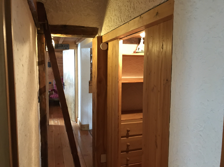 • 2 Chambres doubles communicantes accessibles par une échelle dans un espace mansardé (1 lit double, 2 lits simples) .