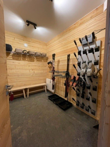 - Un ski room avec bancs, casiers et sèche chaussures au niveau départ ski