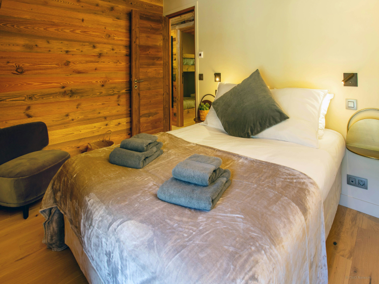 Le magnifique séjour du chalet Frontflip est particulièrement accueillant, avec son confortable canapé d’angle et sa grande table à manger. Vous trouverez trois chambres doubles, dont deux bénéficient d’un balcon privé, ainsi qu’un dortoir pour quatre que les enfants adoreront.