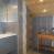 Espace cuisine / carrelage au centre est toute équipée de meubles façades en béton ciré et façon bois, plans de travail en granit, appareils ménagers inox de grande qualité classement A++ minimum, comptoir bar équipé de 4 tabourets de cuisine haut. WC indépendant avec lave mains 4.3 m²