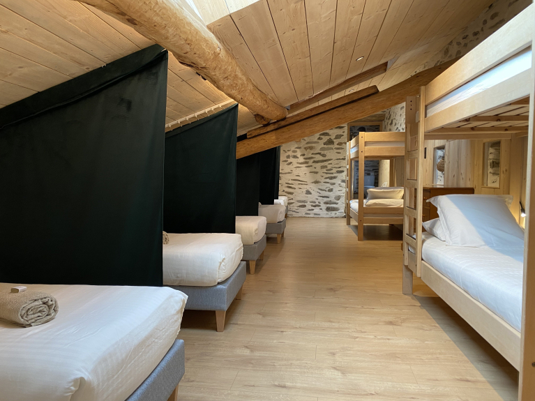 En fonction du nombre de personnes la configuration des lits du dortoir peut-être adaptée.