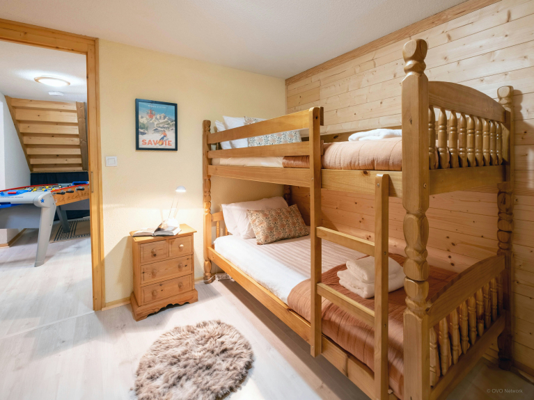 Quatre des six chambres se trouvent à l’étage supérieur, dont deux avec une salle d’eau attenante et deux autres avec accès à un balcon. Un dortoir et une chambre jumelle sont situés au rez-de-jardin, tout près d’une salle de jeux avec télévision. Les enfants risquent de rapidement s’approprier tout cet étage, pour jouer au babyfoot ou regarder un film.