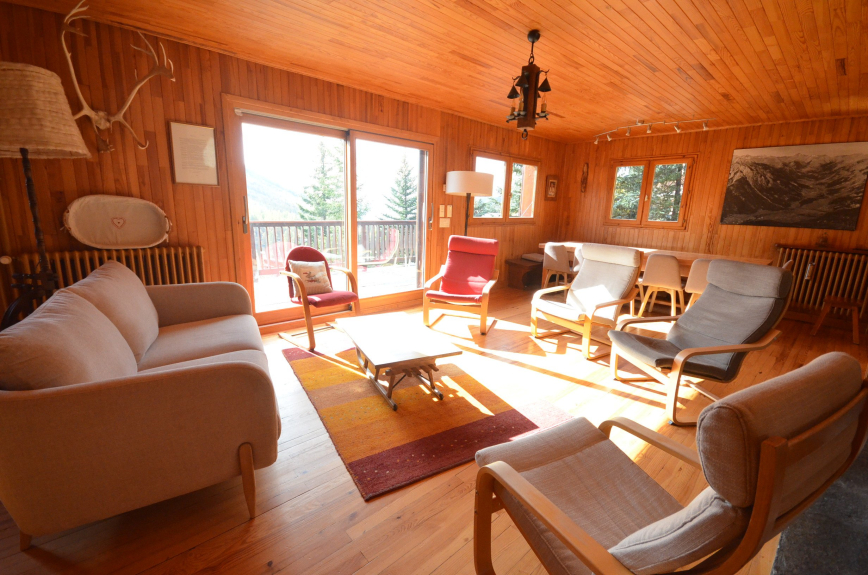 Un double salon/ salle à manger de 44 m² permet aux parents de profiter confortablement de moments conviviaux pendant que les enfants se retrouvent dans la salle de jeux de 31 m² (pingpong, babyfoot, jeux, bibliothèque...) La grande terrasse de 22m² permet de déjeuner en extérieur, été comme hiver et de se détendre sur les transats en profitant du superbe panorama sur le Janus et la barre des Ecrins.