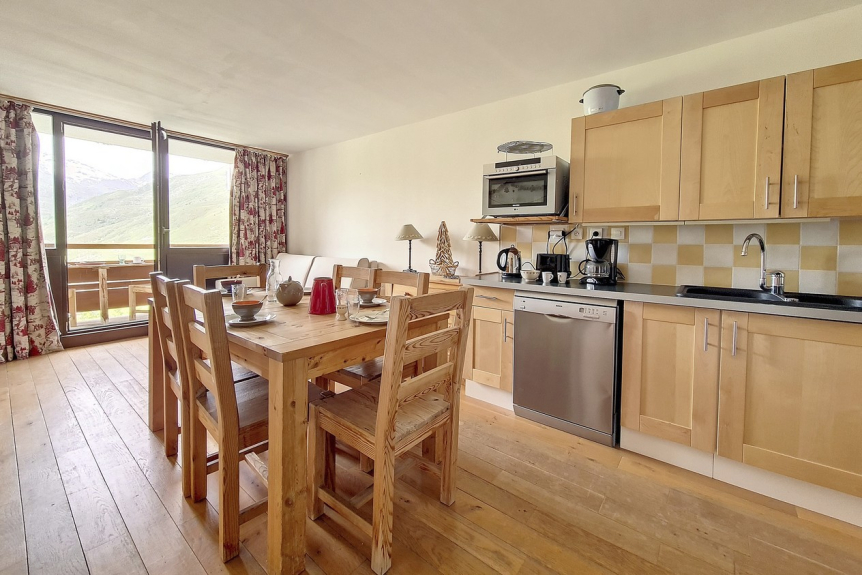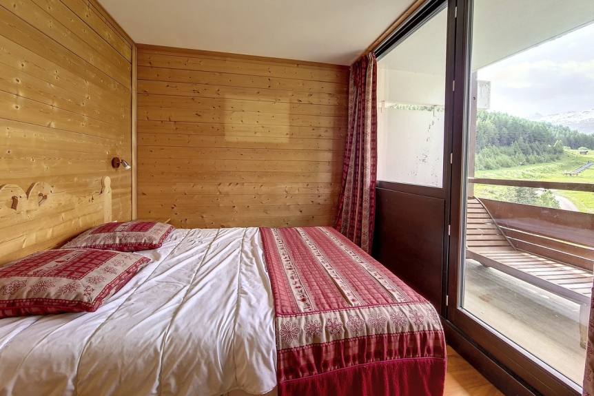 Appartement 2 pièces cabine, composé d'une chambre, une cabine et un séjour exposé au Sud, d'une surface de 38m², équipé pour 6 personnes.