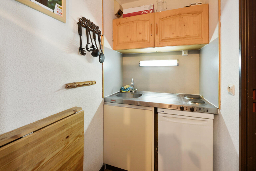 Appartement 2 pièces , 25 m², équipé pour 4 personnes. Jolie terrasse offrant une vue ouest sur la chaine de montagne de la MASSE.