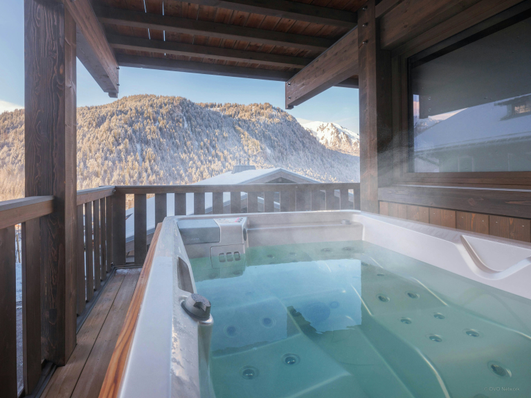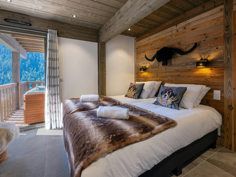 Grâce à 3 salles de bains et 4 chambres, qui peuvent être aménagées au choix avec des lits king-size ou des lits jumeaux pour deux des chambres, ce logement est idéal pour une grande famille ou bien un groupe d’amis qui souhaitent découvrir les Alpes. Deux des chambres donnent sur un balcon équipé d’un jacuzzi, le point fort du Chalet Amarou.