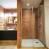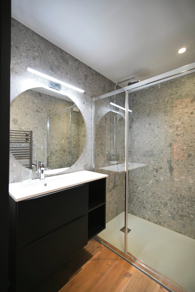 En rez-de-jardin (niveau -1 par rapport au séjour) : 3 chambres avec 1 lit 2 personnes 160x200 cm, TV et salle d'eau privative (douche) pour 2 chambres, 1 chambre de 20m2 (1 lit 2 personnes 160x200 cm, 1 lit 90x200 cm et TV) avec salle d'eau privative (douche), salle d'eau indépendante (douche), WC séparé.