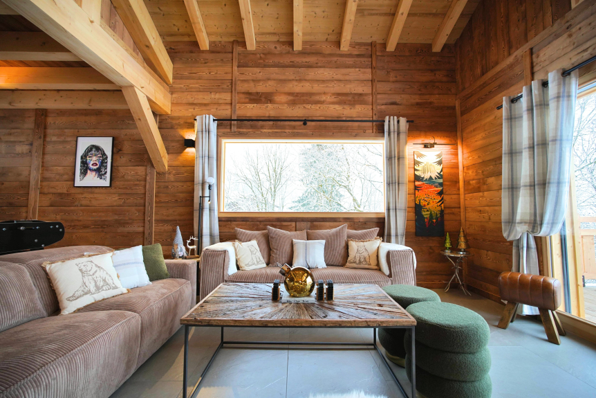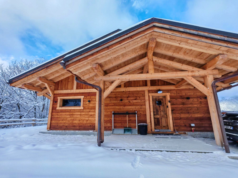 Chalet neuf à 900m des commerces de Crest-Voland. Belle pièce de vie spacieuse et lumineuse par ses larges baies vitrées donnant sur une terrasse en bois de 40 m². Vue panoramique sur le massif des Aravis. Terrasses privatives pour 3 chambres en en rez-de-jardin. Parking privatif pour 3 voitures. Borne de recharge pour véhicule électrique publique à 500m au centre du village (recharge de voiture éléctrique non autorisée dans le chalet). Prestations non incluses : lits non faits et film en VOD ou téléchargement via opérateur Internet.