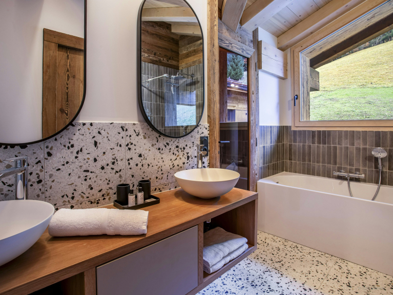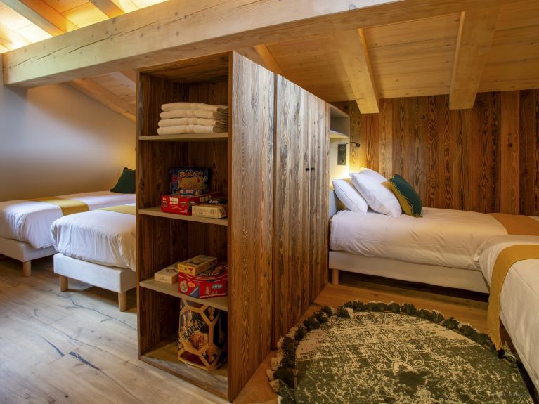 Grâce à ses quatre chambres doubles, réparties sur 2 étages, ce chalet convient particulièrement à 2 familles qui souhaiteraient séjourner ensemble, tout en gardant des espaces privés. Tous les lits king size peuvent être séparés en lits jumeaux, selon les besoins spécifiques de votre groupe.