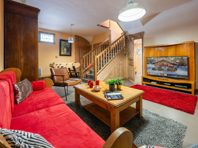 Avec un salon confortable, un espace bar, et une salle de jeux qui inclut une télévision et un babyfoot, vous vous sentirez à l’aise dans le chalet. L’extérieur quant à lui compte deux terrasses, un balcon et un grand jardin ouvert où les enfants pourront jouer et se dépenser.