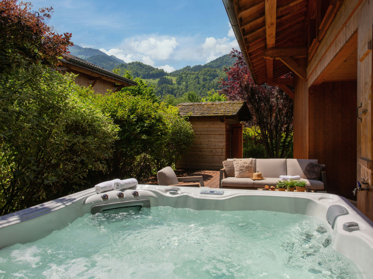 Le Chalet Evonyx propose 5 chambres et 4 salles de bains pour 12 vacanciers, ainsi qu’un jacuzzi, un sauna, et un terrain de pétanque.