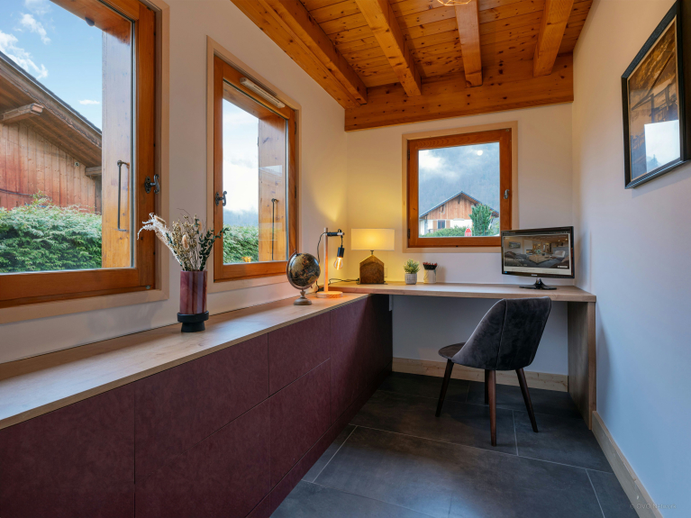 Outre ses nombreuses options de couchage, le Chalet Evonyx compte une salle de jeux pour les enfants, un coin lecture, et un bureau qui vous permettra de travailler pendant votre séjour. Son local à skis, muni d’un sèche-chaussures chauffant, vous permettra de vous mettre à l’aise dès votre retour des montagnes.