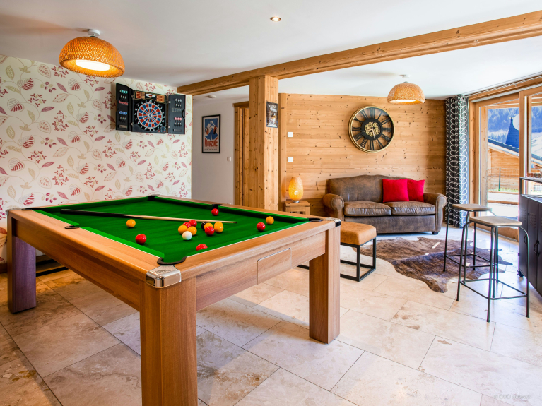 Nous adorons son emplacement. Lorsque vous reviendrez au chalet Levant Blanc après une journée en montagne, vous pourrez véritablement déconnecter et vous reposer. Les enfants disposeront de leurs propres espaces : une salle de jeux avec jouets pour les plus petits au niveau principal et les plus grands se retrouveront au rez-de-chaussée dans la salle équipée d’un billard, d’une cible de fléchettes et d’un téléviseur.