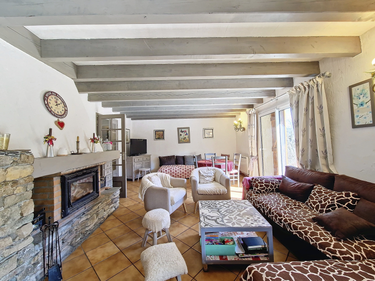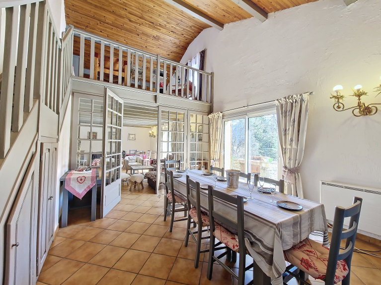3 chambres, 1 mezzanine, cuisine équipée, salon, salle à manger, salle de douche avec WC et 1 salle de bain avec baignoire et WC. Terrasse et parking.