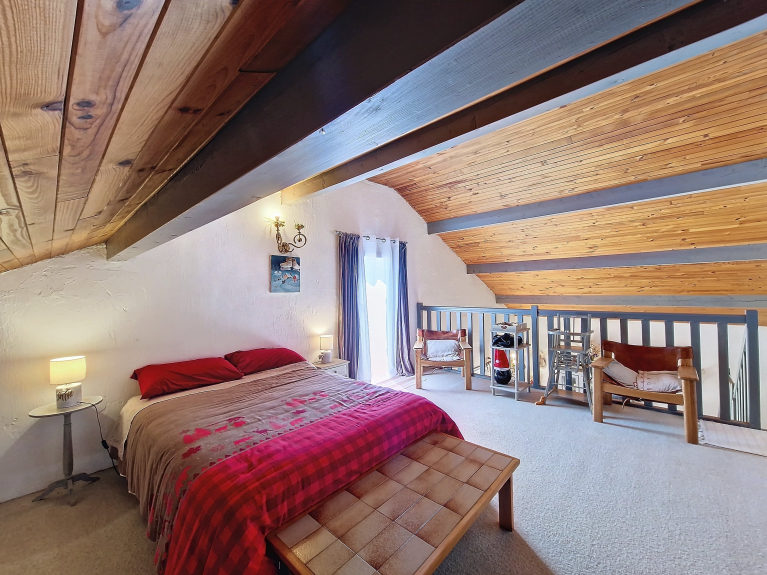 Coin couchage en MEZZANINE : 1 lit double en 140x190 avec couette