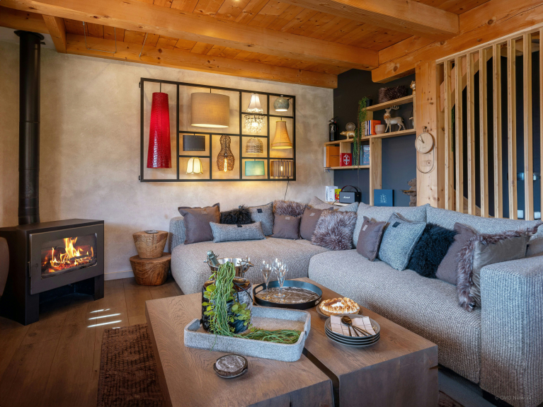 Décor chaleureux avec poêle à bois