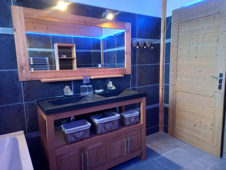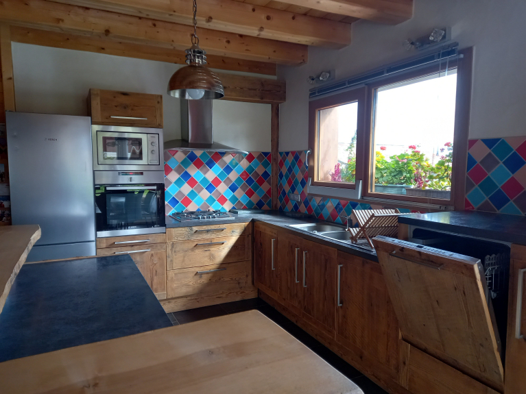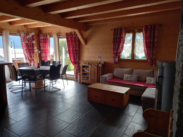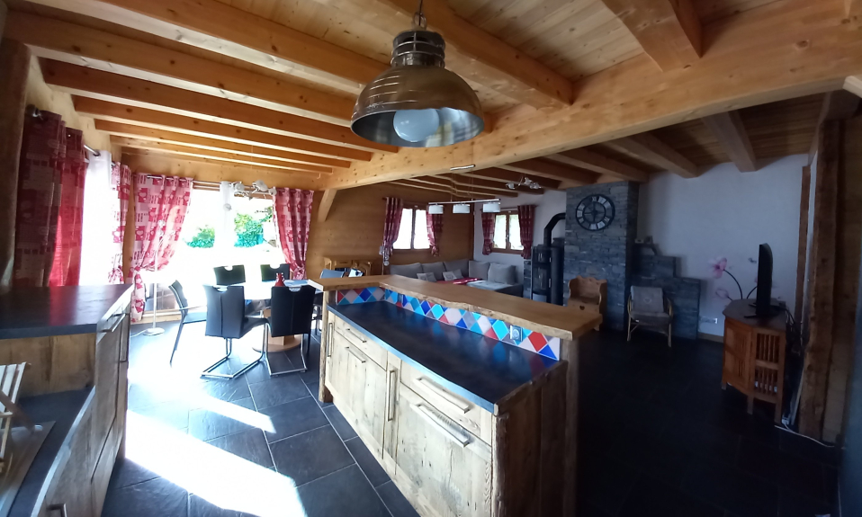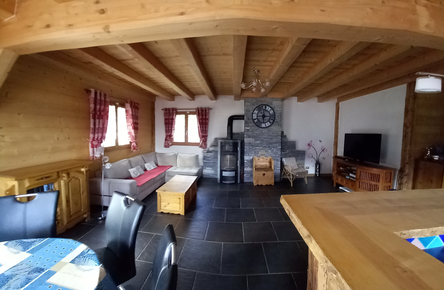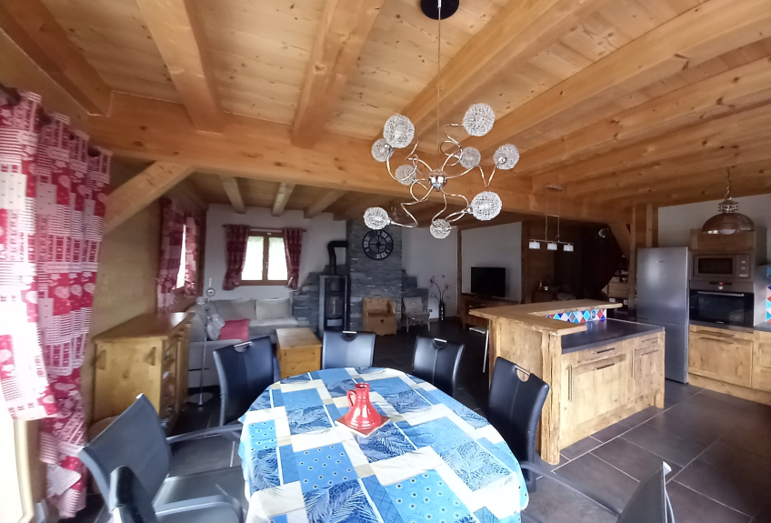 Chalet de 130m2, chaleureux et tout confort, avec un grand salon/cuisine de 50m2, 2 grandes chambres doubles, une chambre triple, et un coin nuit.