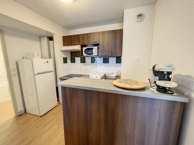 - 1 séjour avec cuisine ouverte (pièce principale).