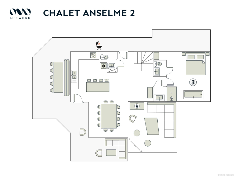 Le Chalet Anselme est une propriété de deux étages pour 10 vacanciers, avec quatre chambres, quatre salles de bains, et une mezzanine / salle de jeux.