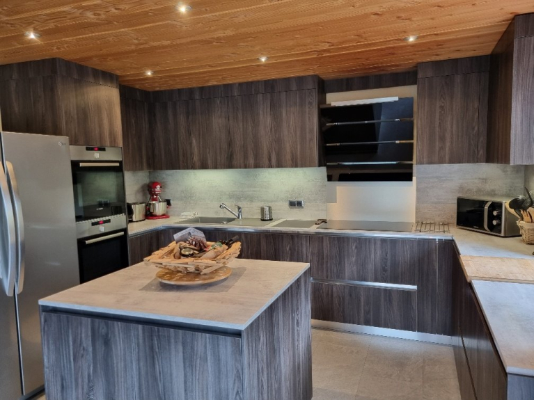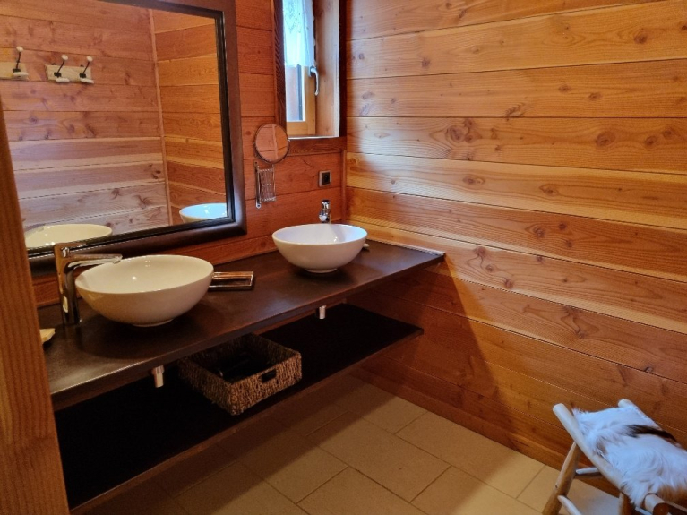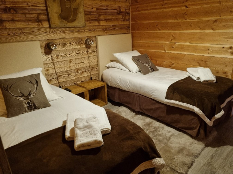 Le chalet compte 6 chambres et 5 salles de douches, d'une buanderie composée d'une machine à laver, d'un sèche-linge ainsi qu'un fer et table à repasser et d'une salle de détente.
