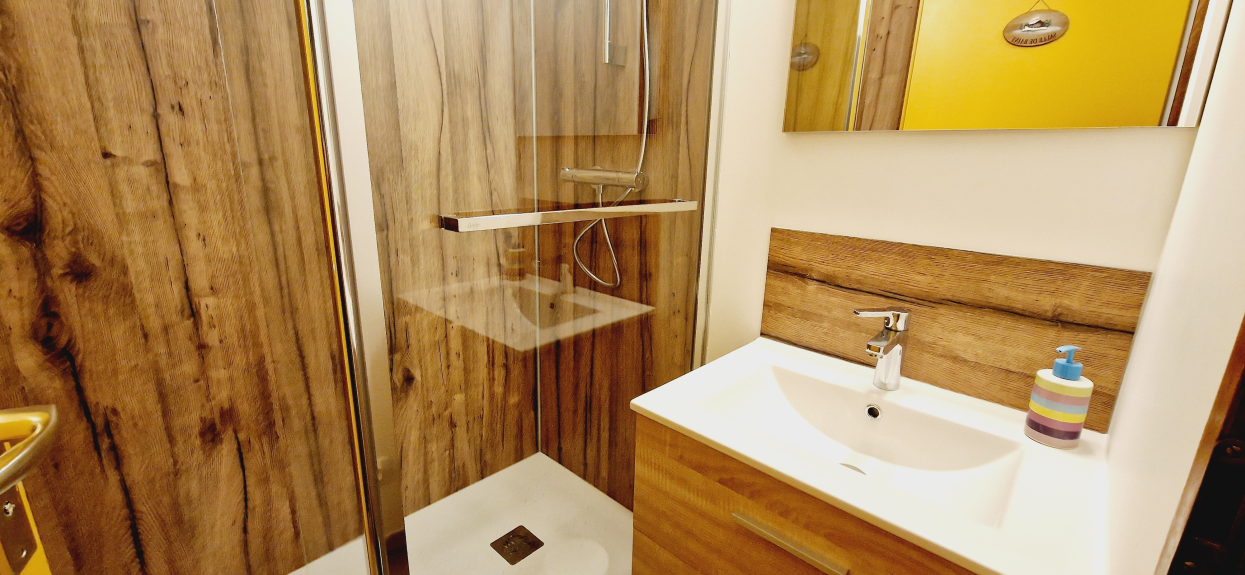 Composé d'une entrée avec un coin montagne (deux lits une place superposés en 80cm),