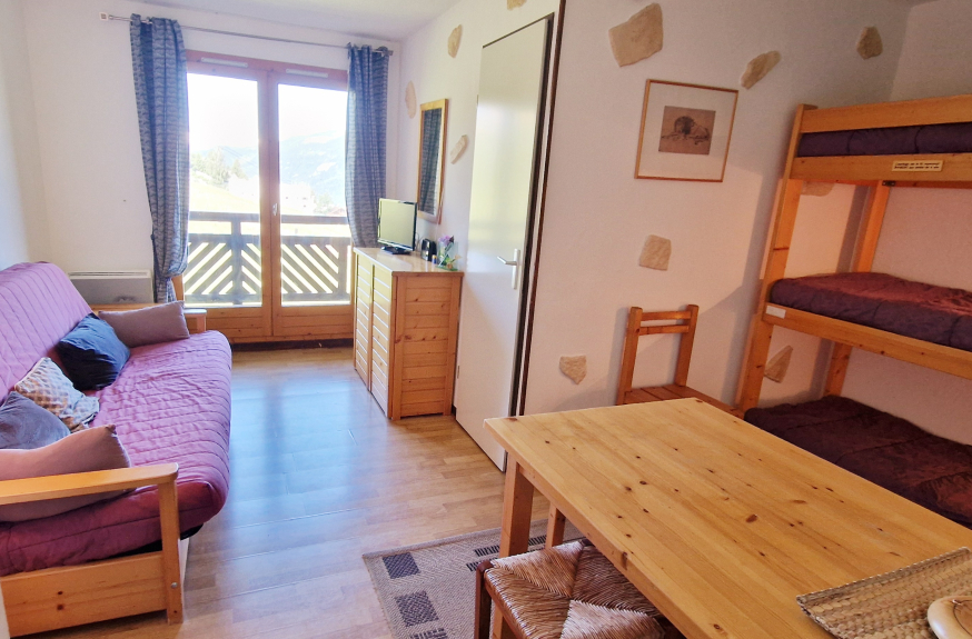D'une surface de 26m2, il dispose d'un balcon avec une exposition plein sud/ouest, offrant une belle luminosité et une vue dégagée sur les montagnes environnantes. Au premier étage de la résidence, il est facilement accessible et dispose d'un casier à ski pour ranger votre matériel en toute sécurité.