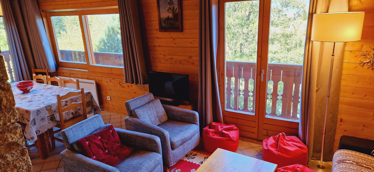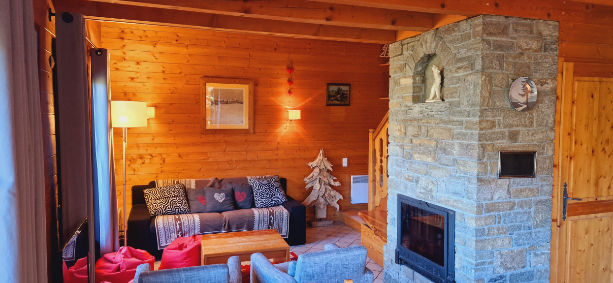 Chalet Individuel de 3 chambres + mezzanine, situé tout proche du cœur de la station. Composé de 2 étages, 110m², avec place de parking devant le chalet, il est exposé sud-ouest avec une magnifique vue sur la vallée et le mont Blanc.