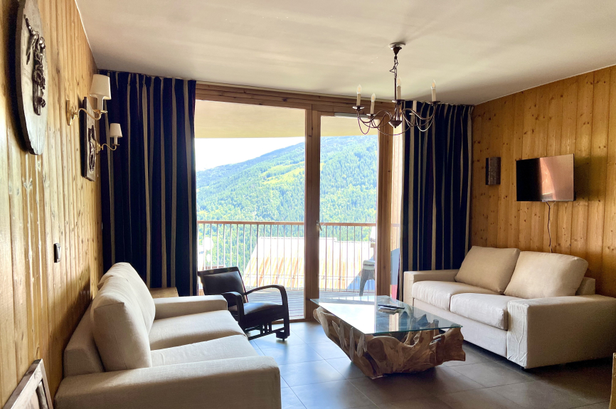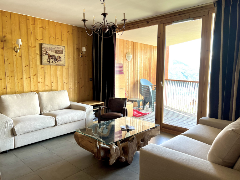Appartement T4 (3 chambres) dans la résidence Les 3 Glaciers Montchavin avec terrasse et vue sur le Mont-Blanc.
