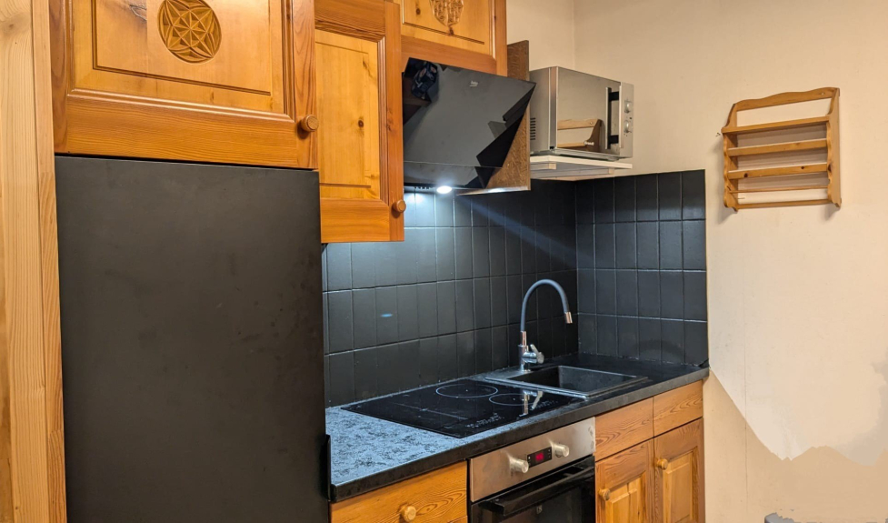 - Cuisine ouverte toute équipée (réfrigérateur une porte avec compartiment freezer, four, lave-vaisselle, micro-onde, cafetières classique et 1 nespresso, grille-pain, bouilloire, services à raclette, services à fondue)