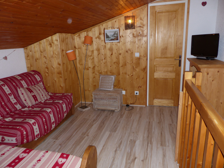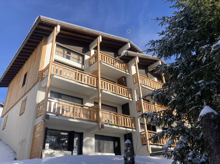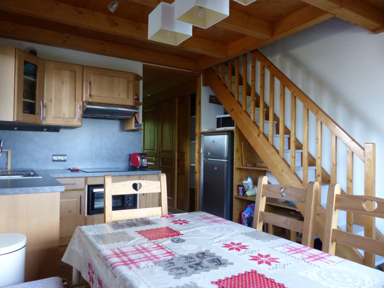 Appartement duplex de 40 m², plus sous-pentes, en RDC et 1er étage, dans une petite résidence entièrement rénovée, au calme, à 200 m des pistes et des commerces. Balcon plein sud, bénéficiant d'une vue magnifique sur les montagnes et les pistes.