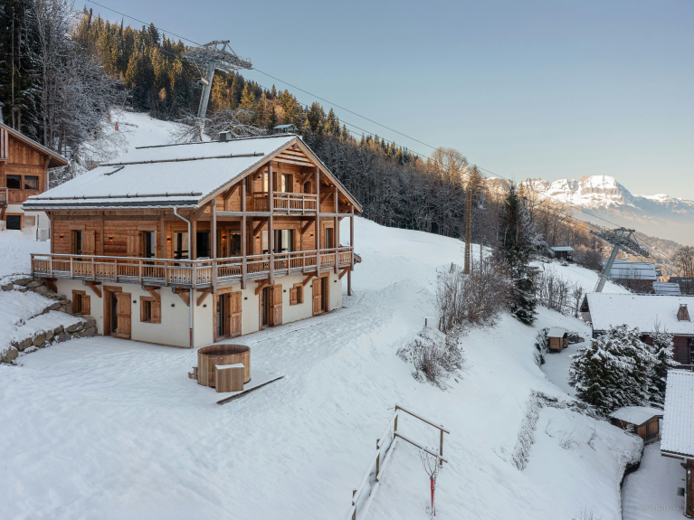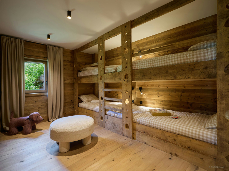 En dépit de son nom, ce chalet bien équipé n’a rien de petit. Il compte trois chambres doubles et un dortoir pour quatre enfants au rez-de-jardin, et deux somptueuses suites à l’étage du haut, chacune comprenant une vaste salle de bains, un bureau, et un accès à un balcon donnant sur le massif du Mont-Blanc.