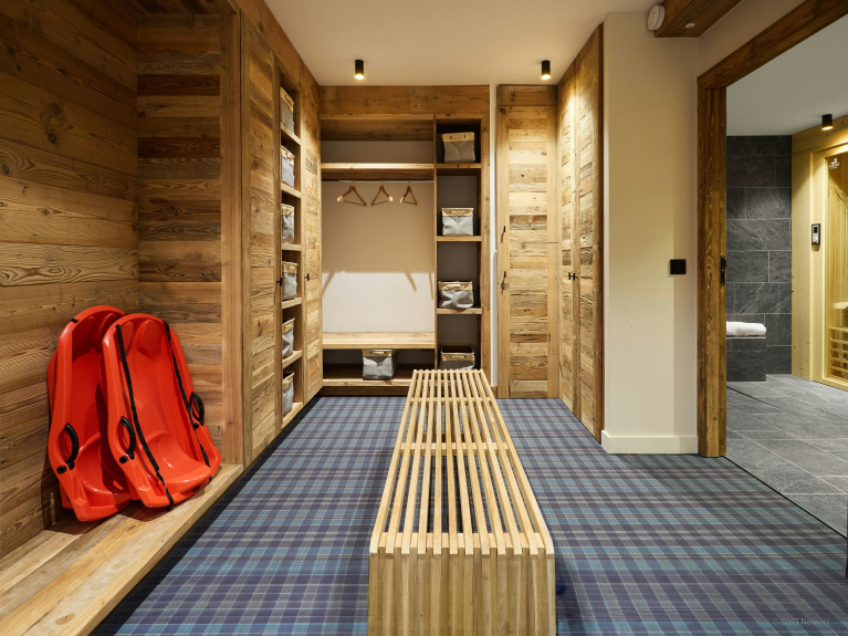Vous trouverez un local à skis dans le hall d’entrée, équipé d’un banc, d’un sèche-chaussures chauffant, et d’un espace de rangement conséquent. Le sauna se trouvant juste à côté, vous pourrez venir directement de la piste de ski, vous défaire de votre tenue d’extérieur, et vous y réfugier ! Le bain nordique à l'extérieur vous assurera également un bon moment de détente.