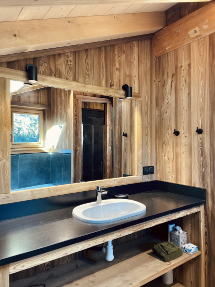 Chalet écoresponsable, il est équipé de panneaux solaires .