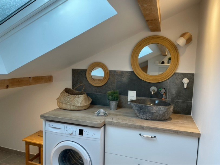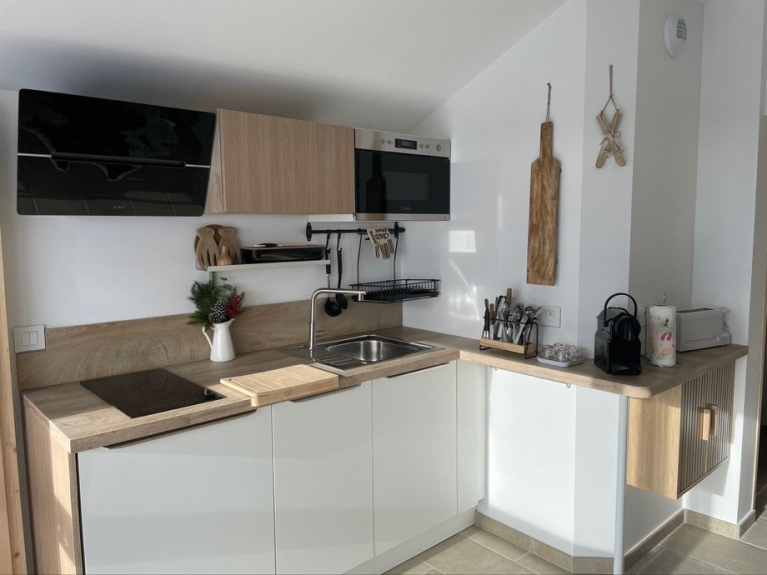 Equipements : plaques induction, frigo, four micro-onde, lave vaisselle, lave linge, cafetière à dosettes, appareil à raclette, TV dans séjour et chambres...