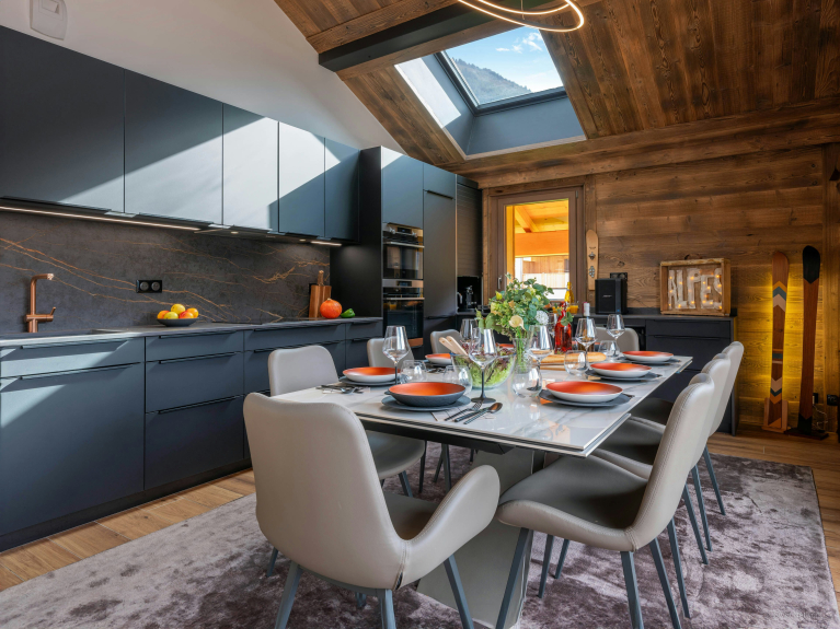 Le Penthouse Barbossine est un luxueux appartement contemporain pour 10 personnes, situé juste à côté de la télécabine de Châtel. Bâti en duplex, toutes les pièces communes sont aménagées à l’étage inférieur, desservi par un ascenseur, ce qui permet l’accès aux personnes à mobilité réduite.