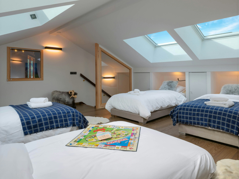 Proposant trois salles de bains, trois chambres doubles et un dortoir sous le toit comptant quatre lits simples, il convient parfaitement à deux familles qui souhaitent explorer ensemble les Portes du Soleil. La navette s’arrête juste en face de l’immeuble et mène à Avoriaz en 15 minutes. Vous pourrez donc abriter vos voitures dans le garage couvert et vous laisser transporter pour toute la durée de votre séjour.