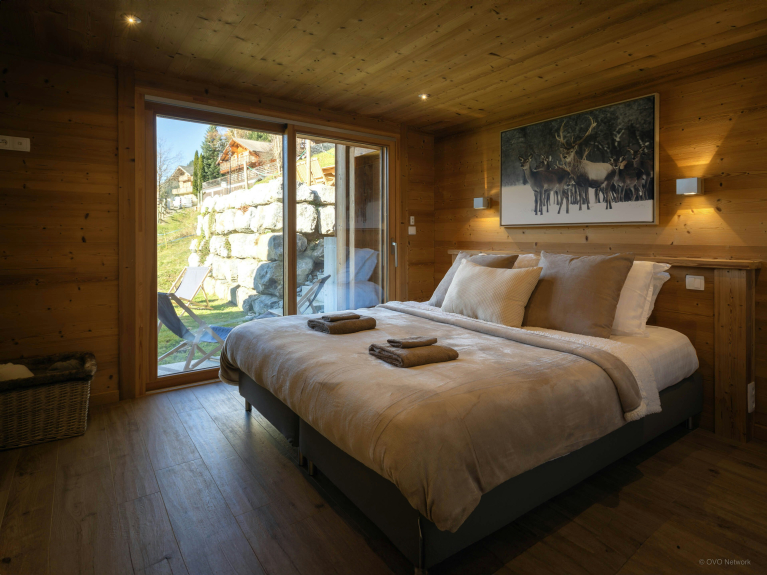 Les quatre chambres du Chalet Wanderlust sont réunies au rez-de-chaussée. Il s’agit de trois chambres doubles, dont l’une contient un lit simple complémentaire, une autre offre une salle de douche et un accès au jardin, et la dernière compte trois lits simples. Cet étage dispose également d’une salle de bains avec douche, de toilettes séparées, et d’une buanderie équipée d’un lave-linge et d’un sèche-linge.