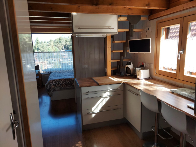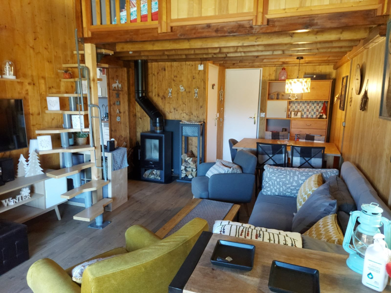 Chalet en bois, exposé sud, de 90 m2, pouvant accueillir 6 personnes. WIFI.