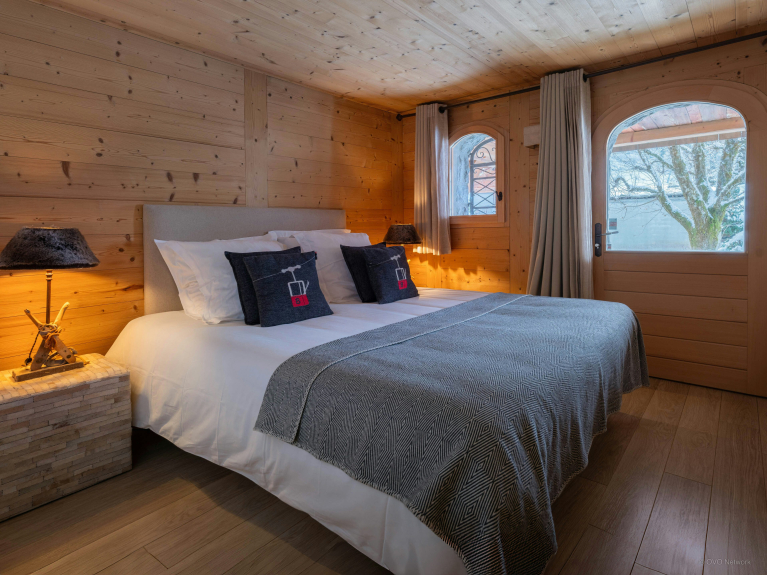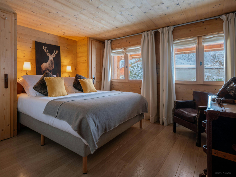 Cet élégant chalet aménagé sur deux niveaux peut accueillir jusqu’à six personnes. Il dispose de trois chambres doubles au premier étage, toutes équipées de télévisions. L’une de ces chambres peut être préparée avec un grand lit king size ou deux lits jumeaux. Une autre chambre bénéficie d’une salle de bains privative, comprenant une baignoire, une douche séparée et des toilettes.