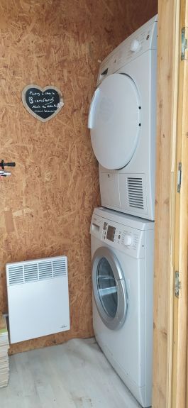 Au rez-de-chaussée, vous trouverez une agréable pièce de vie équipée d’un grand placard de rangement, d’un canapé, d’une TV écran plat 80 cm, ainsi qu’une table ronde avec rallonge pour vos repas en famille.
