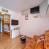 Cuisine équipée de 2 plaques, micro-ondes, réfrigérateur, bouilloire, cafetière et grille-pain.