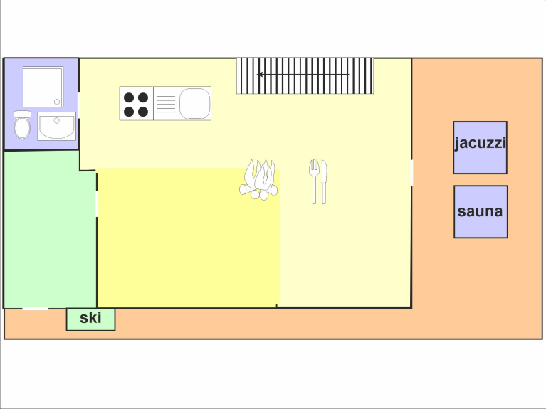 Niveau 2 : L'entrée principale se fait par la halle d'entrée. Sur cet étage se trouve le salon lumineux, avec la poêle à granulés, des canapés et des poufs ainsi que le smart-TV. La grande table de l'espace salle à manger accueille confortablement 12 personnes. La cuisine ouverte est très bien équipée. En outre, il y a une salle de bain avec douche, lavabo et WC. Sur la terrasse, il y a l'espace bien-être avec la cabine de sauna pour deux personnes ainsi que le jacuzzi pour quatre personnes. Balcon côté sud.