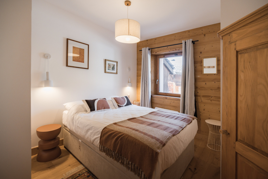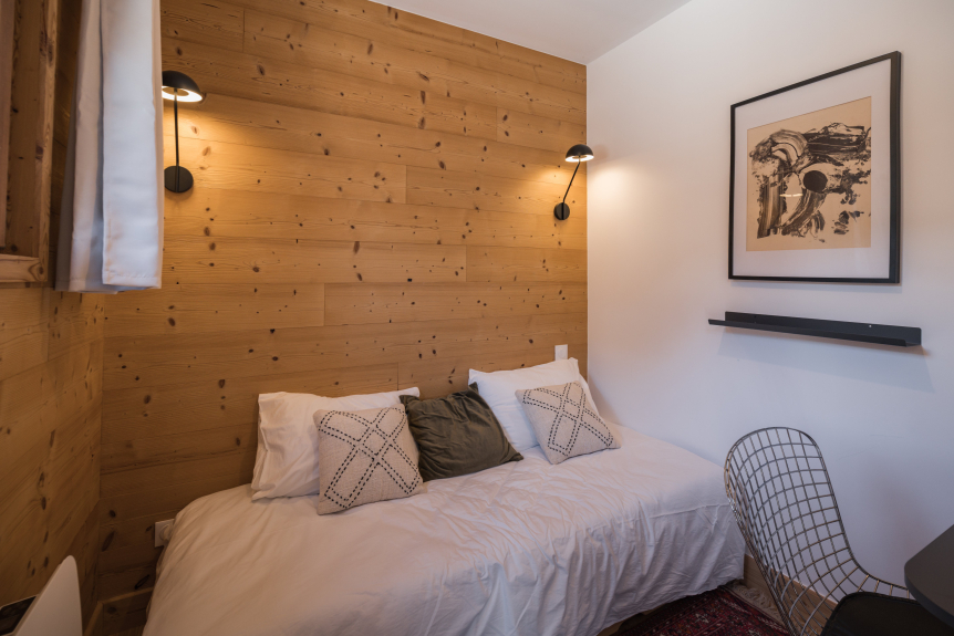 Bienvenue à Fontana Alta, un appartement qui réinvente l’esprit de la montagne. Ici, pas de chalets rustiques ni de bois sculpté à l’excès, mais une ambiance chaleureuse et contemporaine où l’art, le design et les matières brutes s’entrelacent harmonieusement.