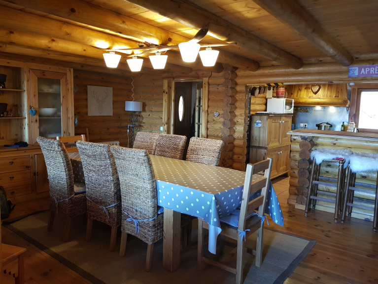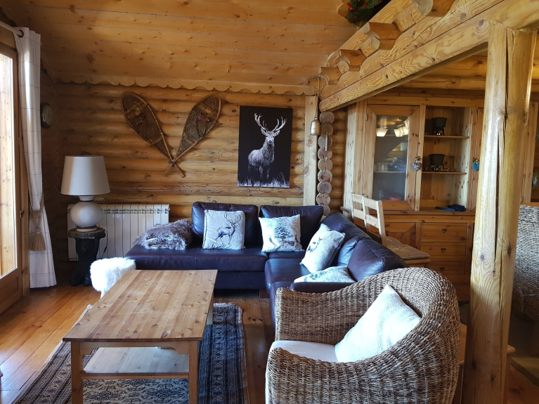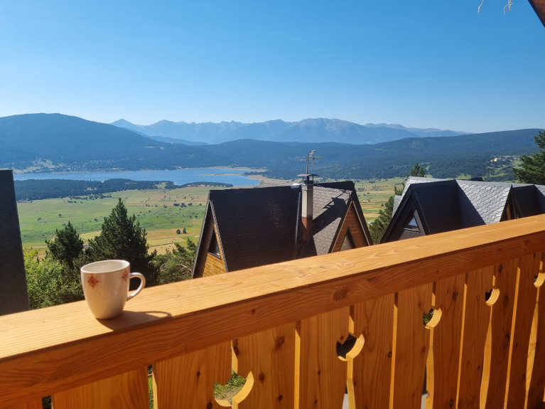 Vous vous sentirez immédiatement bien dans ce vaste Chalet de charme pour 12 à 16 p familial en rondin, décoré esprit montagne. Magnifique vue sur lac de Matemale orienté Sud-est.